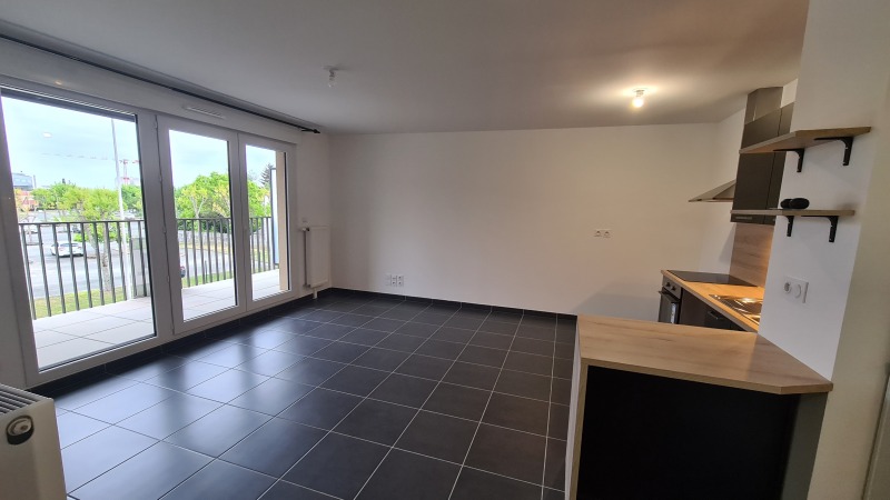 ORLEANS limite FLEURY proche transports en commun, dans résidence NEUVE, bel appartement F3 avec un grand balcon, comprenant : une pièce à vivre avec cuisine ouverte aménagée et équipée, (plaque de cuisson, four et hotte) deux chambres avec placards, une salle de bain, un wc indépendant. Deux places de parkings en sous -sol sécurisées. Grand local vélos.
