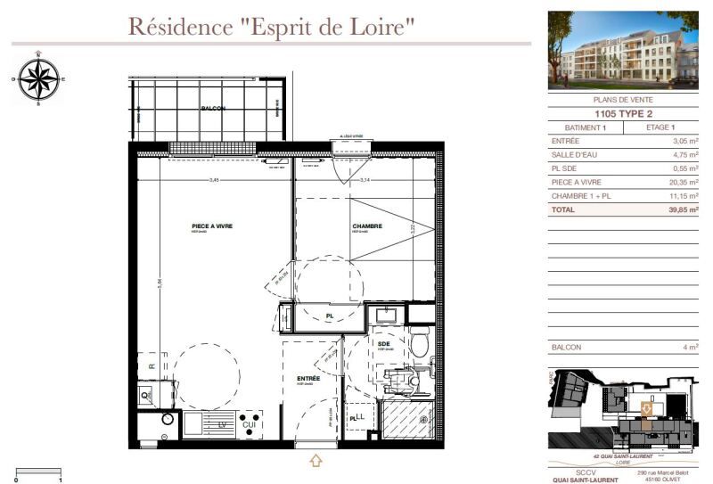 Dans toute nouvelle résidence en Bords de Loire, louez ce F2 situé au 1er étage avec ascenseur et comprenant : une entrée, une pièce à vivre avec cuisine ouverte aménagée et équipée (hotte + plaques + four) donnant sur un balcon, 1 chambre avec placard dressing, une salle d'eau avec wc. Une place de parking couverte en sous-sol.