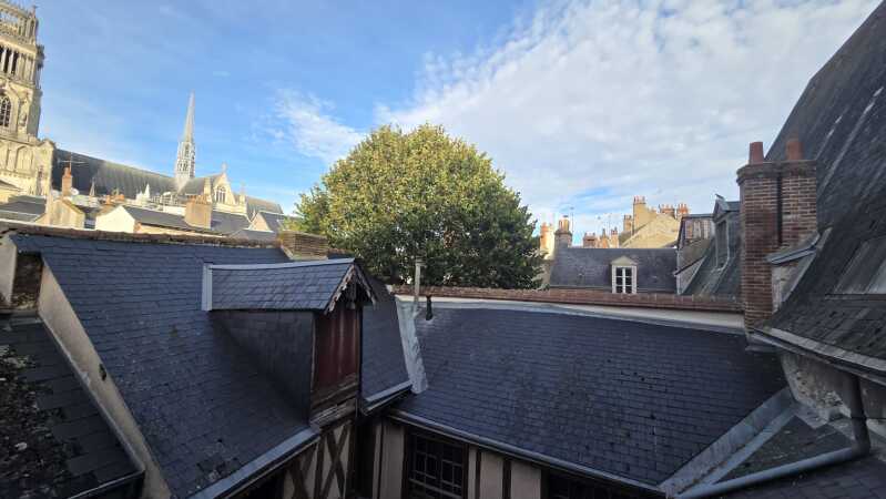 ORLEANS centre historique, dans un petit immeuble, louez ce beau F3 rénové en 2025 et situé au 2ème étage comprenant : un couloir, un grand séjour avec 2 cheminées en marbres décoratives, une cuisine aménagée et équipée (hotte + plaques + four), une chambre avec placards dressing, une salle d'eau avec grande douche italienne, une 2ème chambre, un wc. Les 2 chambres donnant au calme sur l'arrière avec vue toits et Cathédrale, coup de coeur assuré.
