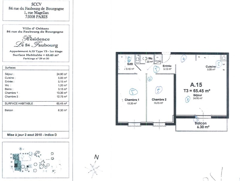 dont 65 € par mois de provisions pour charges - régularisation annuelle